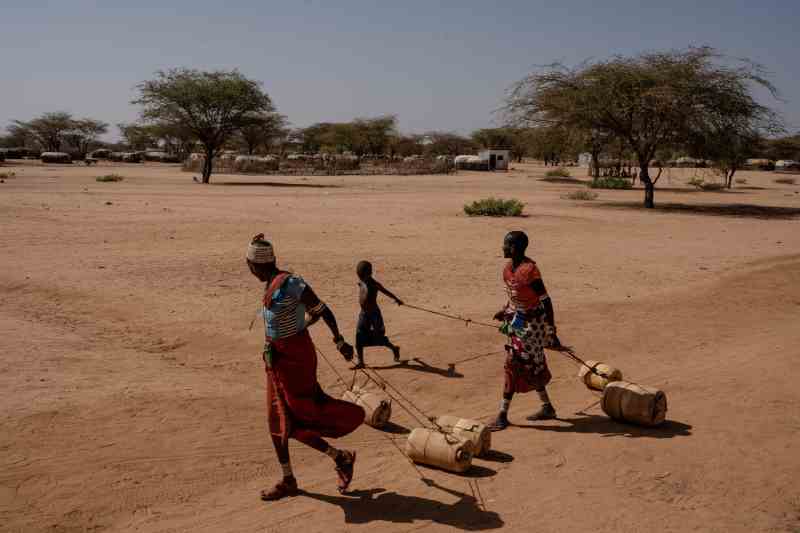 Sous la chaleur accablante de Kainama, dans le comté de Turkana, Veronica Akalapatan et ses voisins parcourent chaque jour plusieurs kilomètres à pied pour atteindre un puits à moitié asséché, cerné par la terre aride du nord du Kenya. Ce trou creusé dans le sol, accessible par une échelle en bois, est l’unique source d’eau de la région. Des centaines de personnes, venues de plusieurs villages, ainsi que leur bétail, se partagent ce puits, la plupart attendant des heures pour remplir de petits seaux en plastique avec de maigres quantités d’eau insalubre.